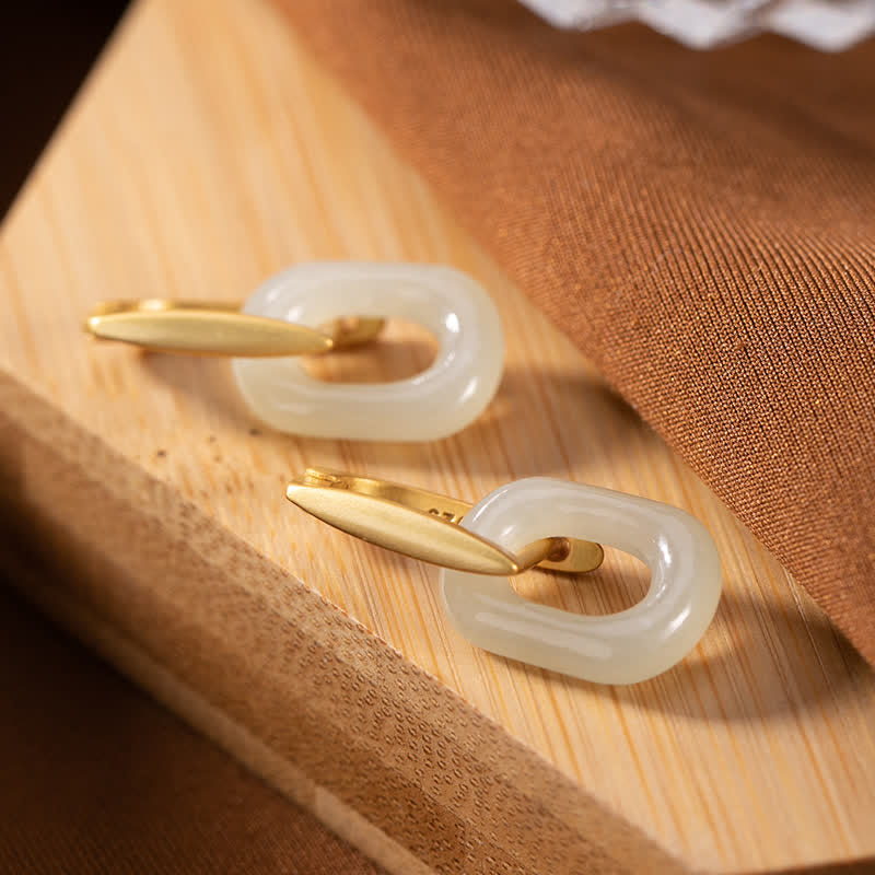 KarmaRipple's 925 Sterling Silver Round Ivory Jade Happiness Blessing Earrings -