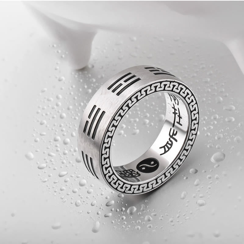 KarmaRipple's Bagua Yin Yang Taoist Nine-Character Mantra Titanium Steel Balance Ring -