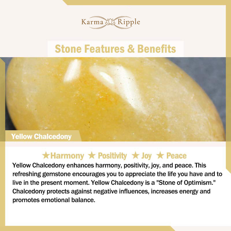 Yellow Chalcedony enhances harmony, positivity, joy, and peace. This refreshing gemstone encourages you to appreciate the life you have and to live in the present moment. Yellow Chalcedony is a "Stone of Optimism." Chalcedony protects against negative influences, increases energy and promotes emotional balance.