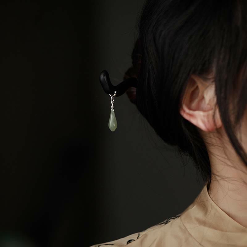 - Material: Hetian Jade, 925 Sterling Silver, Ebony Wood