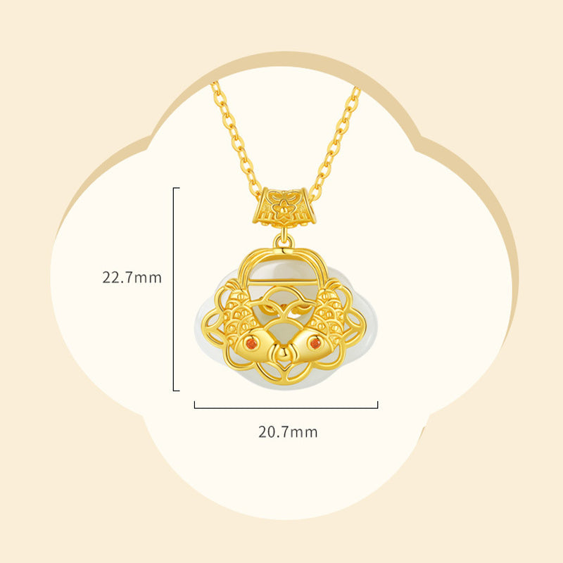 The KarmaRipple Jade Koi Wealth Pendant combines the serene elegance of natural Hetian jade with the auspicious koi fish, intricately crafted in 925 sterling silver. This pendant is a symbol of wealth and good fortune, drawing on the koi's representation of perseverance and abundance. The calming presence of Hetian jade adds a touch of tranquility, making this pendant a perfect blend of prosperity and peace for daily wear.