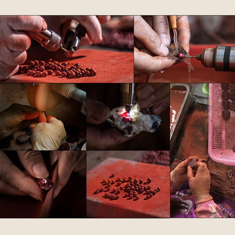 We work with skilled artisans who respect the spiritual traditions behind each material. Every cut, polish, and knot is done with care, intention, and a prayer for balance and well-being.