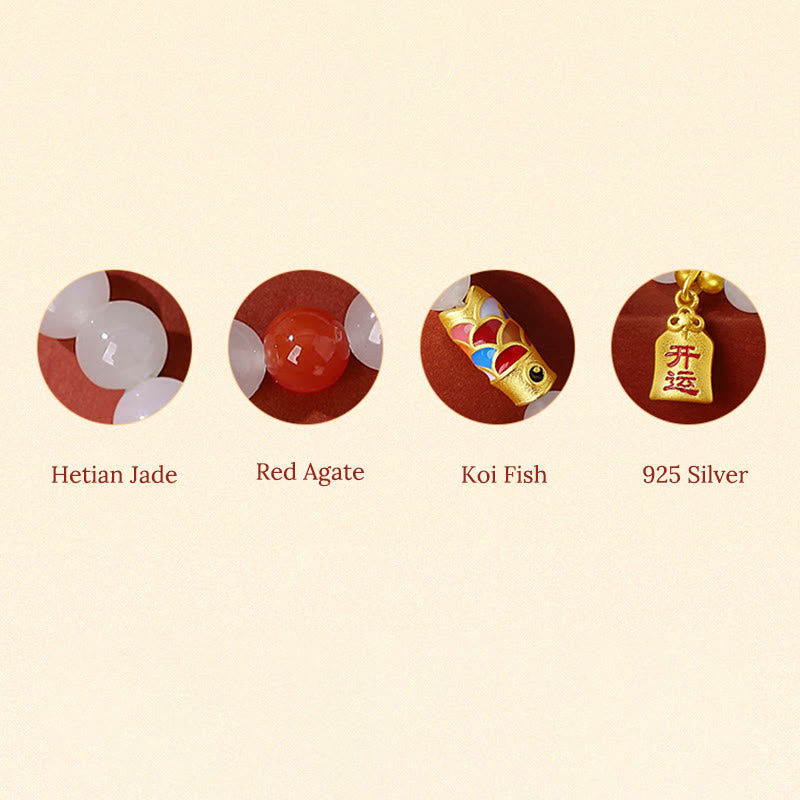 - Material: Red Agate, White Jade, 925 Sterling Silver