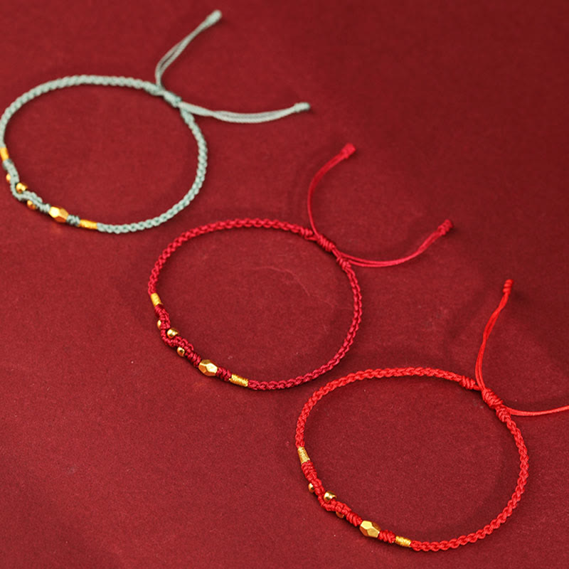 KarmaRipple's 999 Gold Year of the Snake Mini Gold Bead Handmade Fortune Protection?Braided Bracelet