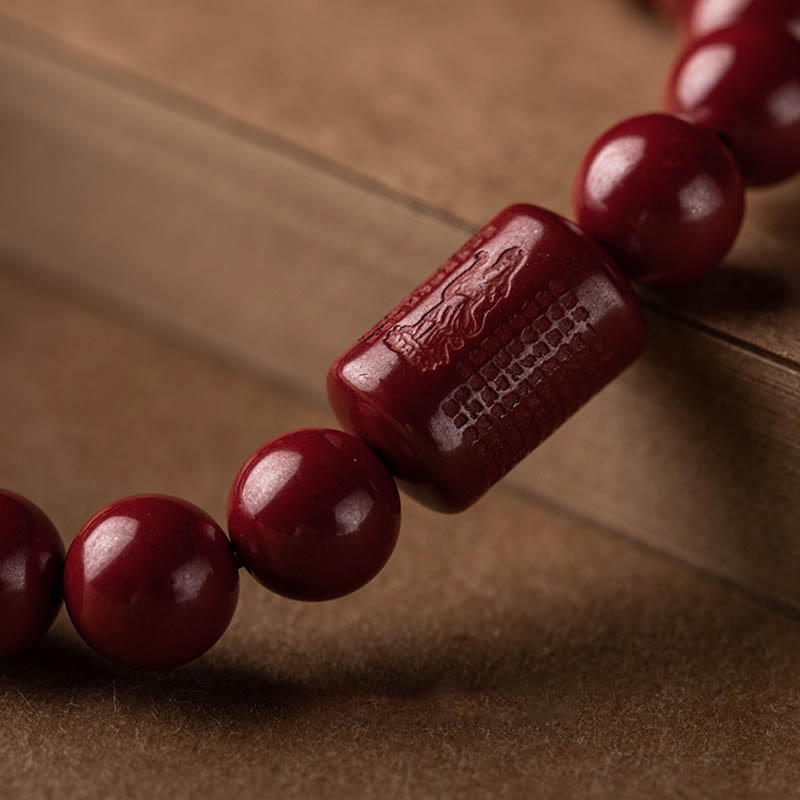 In Buddhist culture, cinnabar is often made into prayer beads and rosary beads. It is used when chanting Buddhist scriptures. It can calm people's minds, calm their minds, concentrate their minds, and improve their wisdom. It is an essential mascot for those who worship Buddha.