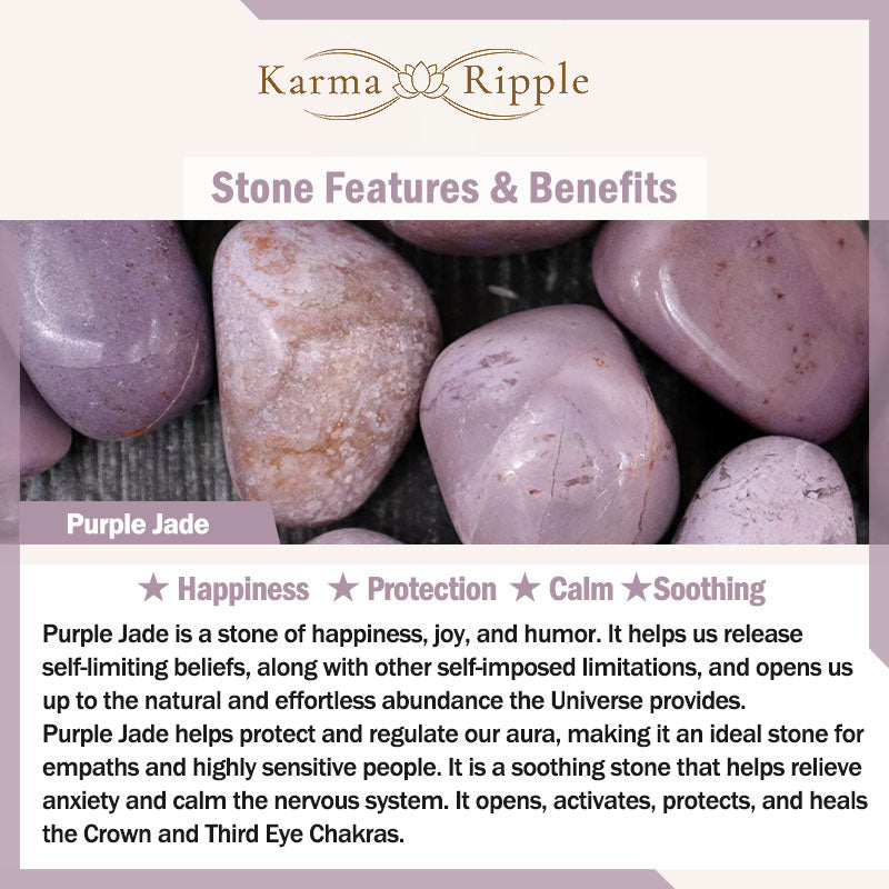 Purple Jade is a stone of happiness, joy, and humor. It helps us release self-limiting beliefs, along with other self-imposed limitations, and opens us up to the natural and effortless abundance the Universe provides.