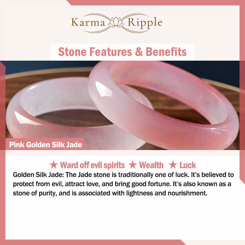 Golden Silk Jade: The Jade stone is traditionally one of luck. It's believed to protect from evil, attract love, and bring good fortune. It's also known as a stone of purity, and is associated with lightness and nourishment.