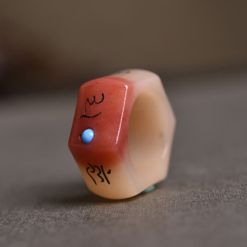 KarmaRipple's Camel Bone Om Mani Padme Hum Carving Protection Ring