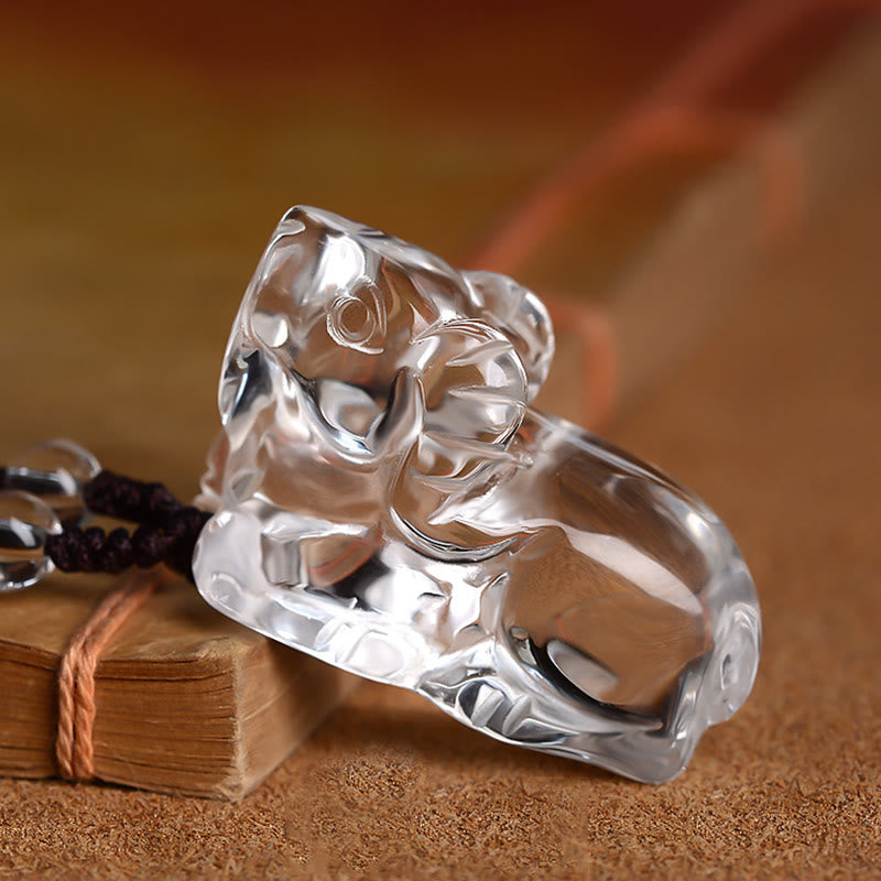 Chinese Zodiac White Crystal Pendant Necklace features a beautifully carved white crystal shaped into Chinese zodiac animals, symbolizing protection and harmony. The white crystal's purity adds a calming energy, while the intricate craftsmanship highlights its cultural significance. This meaningful piece combines the strength of natural crystal with timeless symbolism, making it a perfect choice for balance and protection.