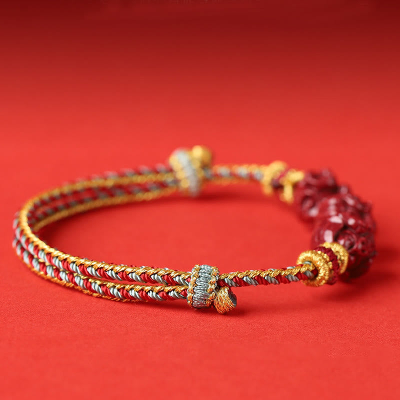 KarmaRipple's Handmade Red String Cinnabar Chinese Zodiac Woven Blessing Bracelet