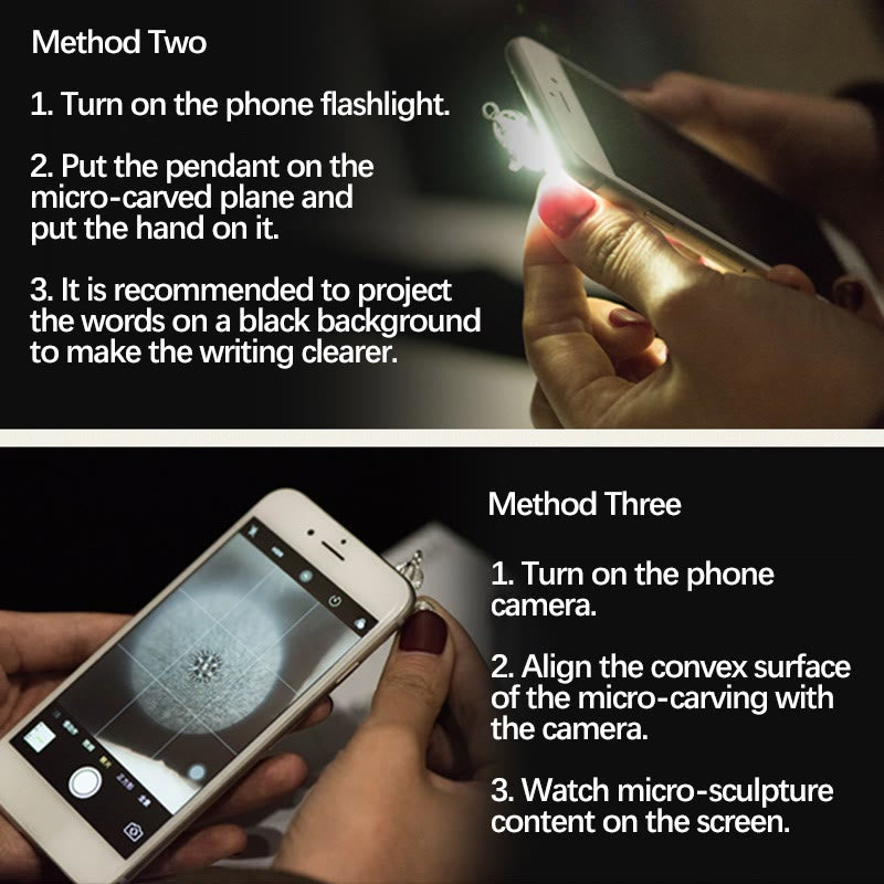 2. Align the convex surface of the micro-carving with the camera.