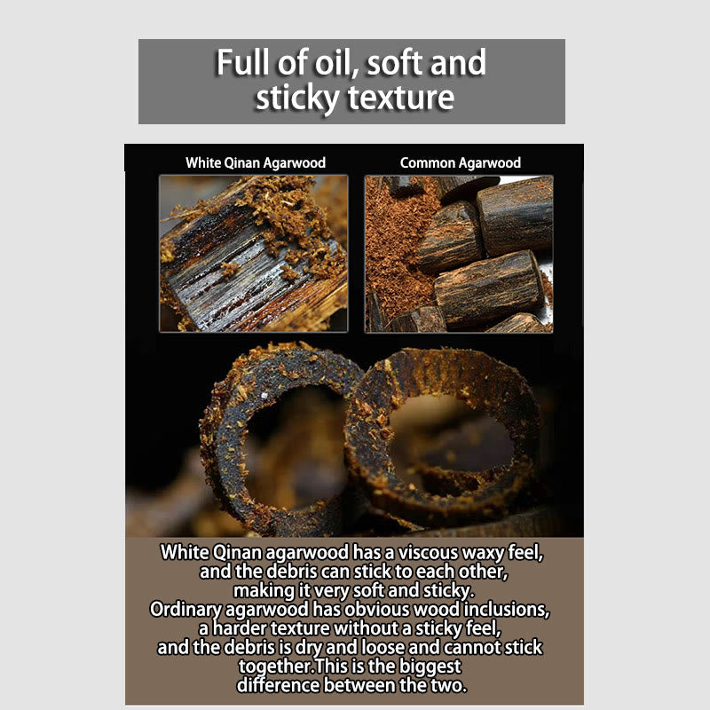 White Qinan agarwood is undoubtedly a treasure among medicinal materials. According to records in traditional Chinese medicine, it can calm the mind, relieve stress, relax and help sleep, etc. Many precious medicines contain white Qinan agarwood, and its unique aroma also makes it the best agarwood in the world. When white Qinan agarwood is burned in the traditional way, the oil will overflow exaggeratedly when it encounters heat, and the fragrance will fill the room, bringing great pleasure to those who smell it. -