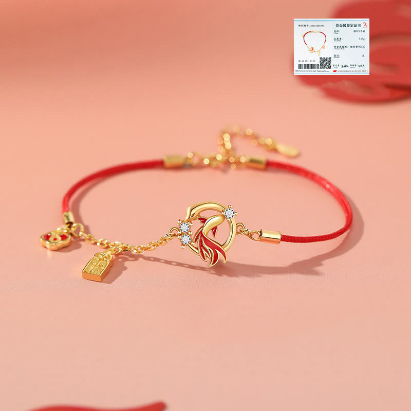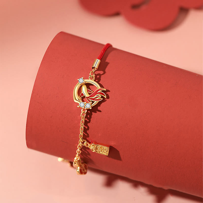 KarmaRipple's Red String 925 Sterling Silver Bronze Coin Koi Fish Year Of The Snake Fortune Bracelet