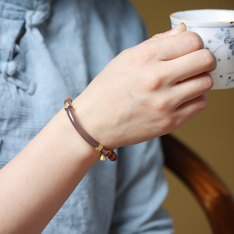 - Material: Sandalwood, Gray Agate, Chalcedony, 925 Sterling Silver Gold Plated