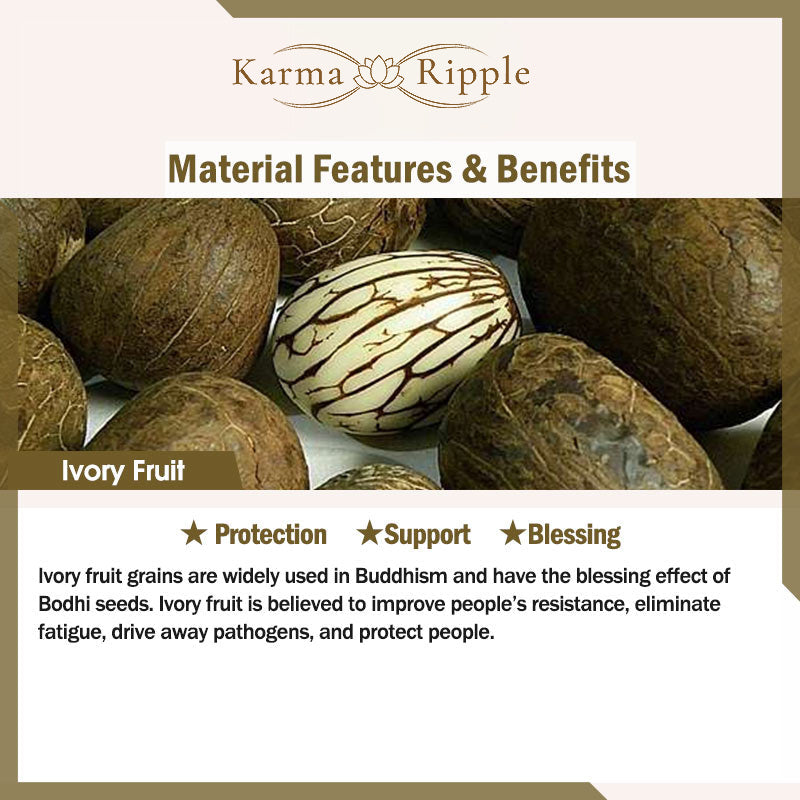 Ivory fruit grains are widely used in Buddhism and have the blessing effect of Bodhi seeds. Ivory fruit is believed to improve people’s resistance, eliminate fatigue, drive away pathogens, and protect people.