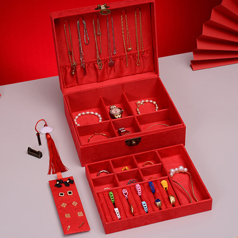 Elevate your jewelry organization with our two-layer flannel box with lock. Premium quality, elegant design - the perfect gift for special occasions.
