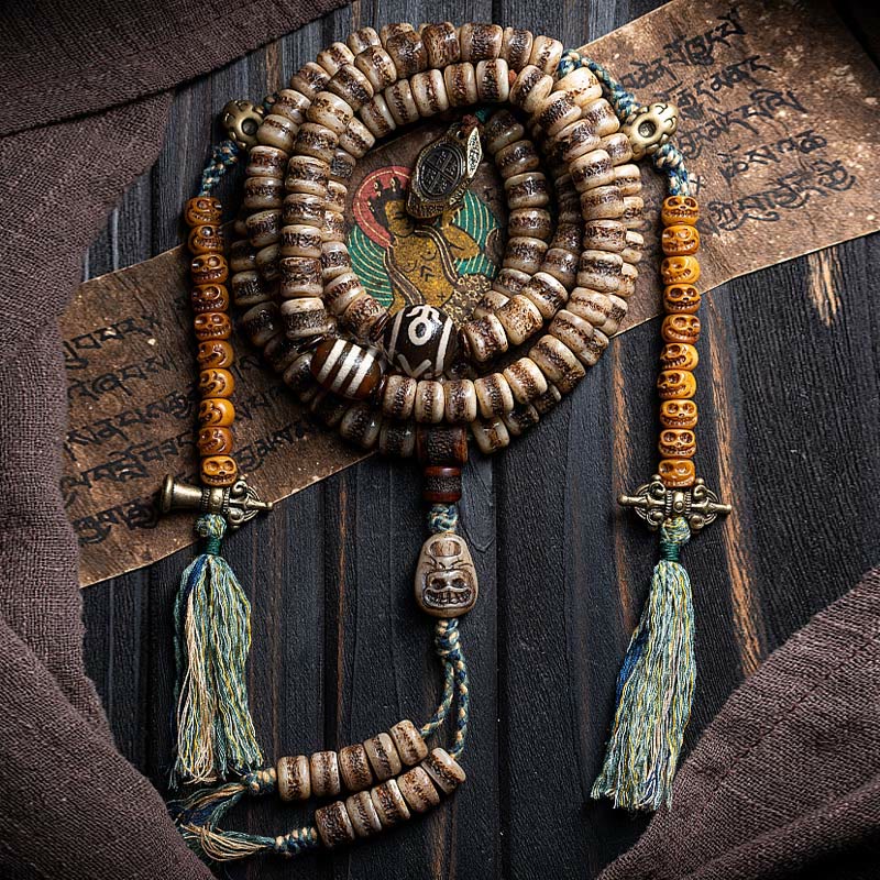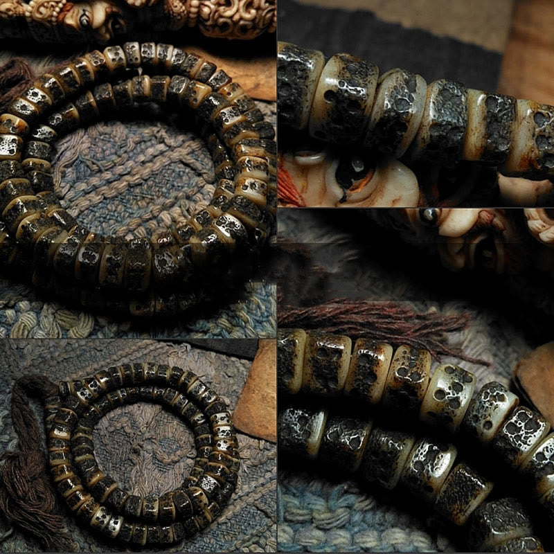 KarmaRipple's Tibetan 108 Mala Beadwork Yak Bone Dzi Bead The Lord of the Corpse Forest Strength Bracelet