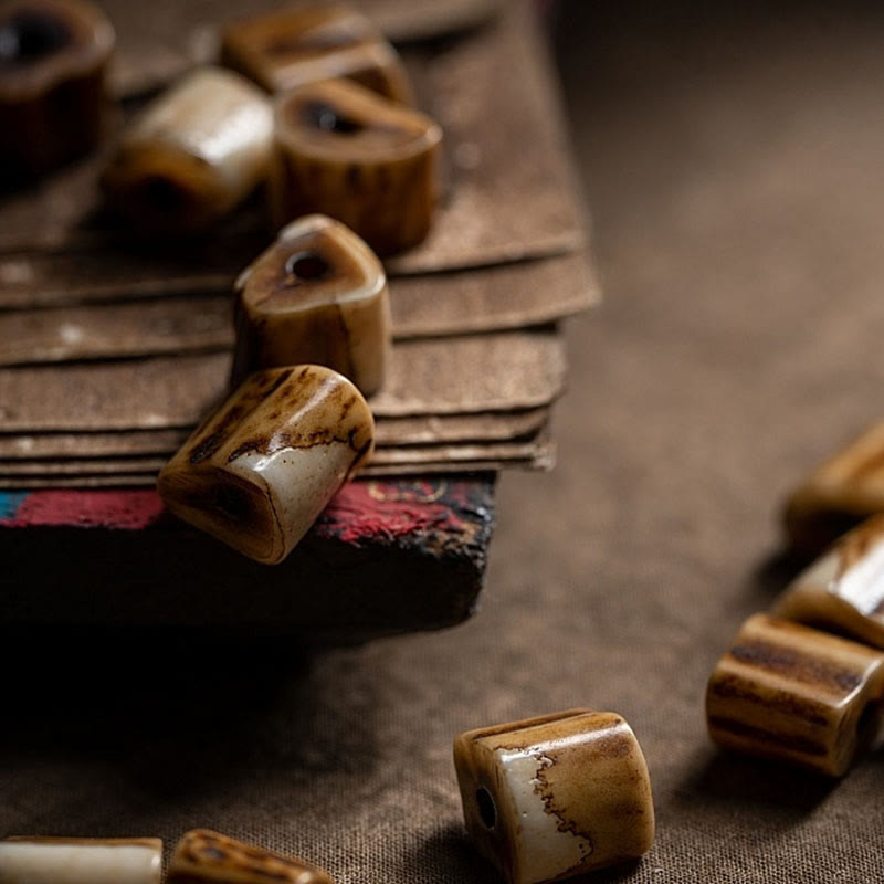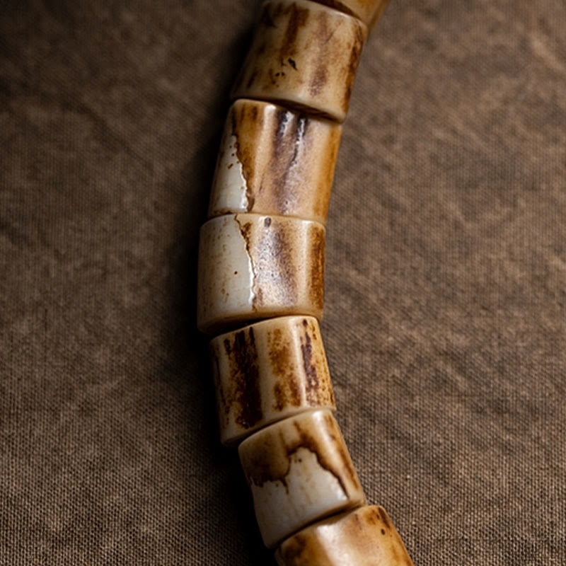 Deer Bone Skull Carved Bracelet features intricately carved yak bone skulls, symbolizing wisdom and impermanence. Made from natural deer and yak bone, it offers spiritual grounding and insight. The bracelet is adorned with a tassel, adding a touch of movement and flow. This piece promotes inner clarity, balance, and connection to life's deeper meanings, making it a powerful spiritual accessory.