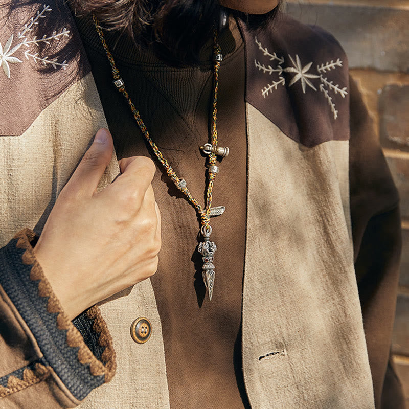 Embodying profound spirituality, the KarmaRipple Tibetan Dorje Vajra Pendant is meticulously crafted in 925 sterling silver. A representation of both indestructibility and irresistible force, it stands as a beacon of enlightenment and strength. Paired with the Six True Words 'Om Mani Padme Hum', this pendant resonates with love, wisdom, and purity. Enriched with silver's blessings, wearing it offers protection and balance. A magnificent blend of tradition, power, and artistry.💗