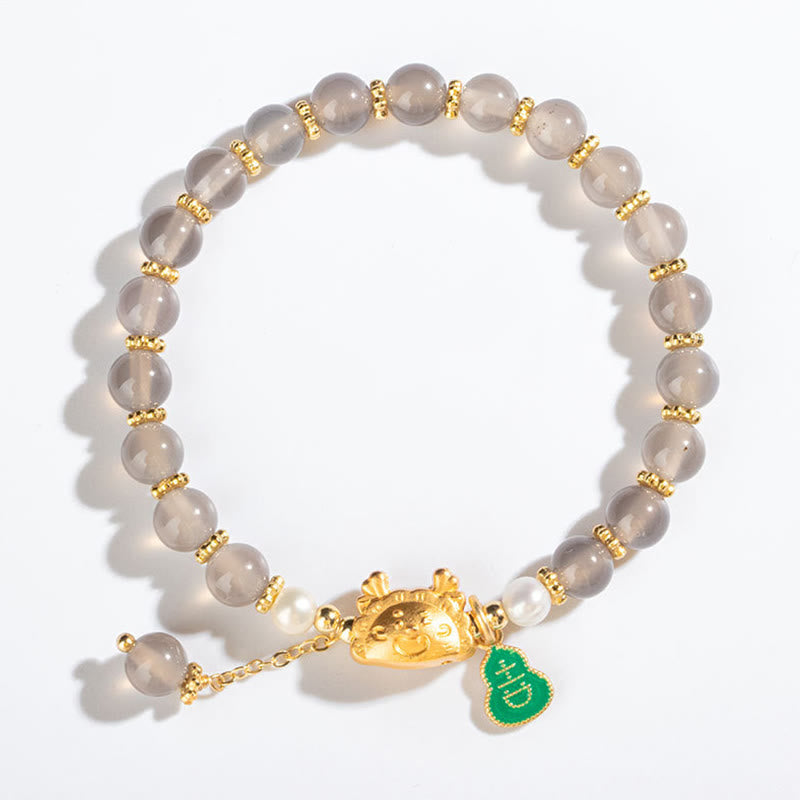 KarmaRipple's Year Of The Dragon Authentic Red Agate Pink Gemstone Black Onyx Dumpling Fortune Fu Character Bracelet